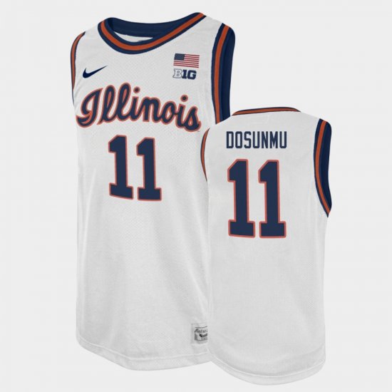 #11 Ayo Dosunmu College Basketball Illinois Fighting Illini Basketball 2021 Swingman Player Men White Jersey